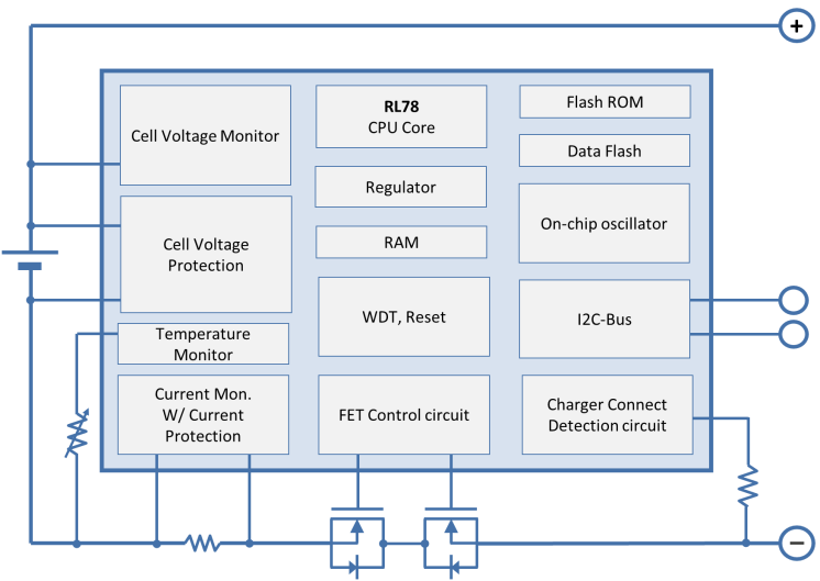 - 集成瑞萨电子的超低功耗 RL78 CPU 内核,用于多功能工艺