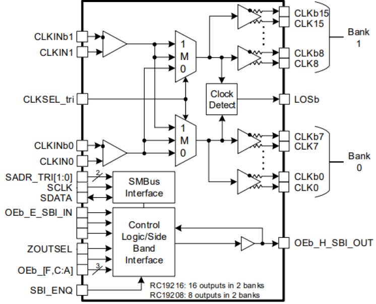 The RC19216 is a 2:16 PCIe Gen7 multiplexer that is backward compatible with earlier PCIe generations. The RC19216 provides ultra-low additive jitter and reduced in-to-out delay performance for better design margin and incorporates several features for easier and more robust design.