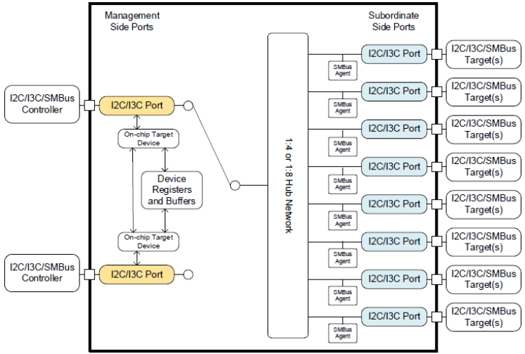 - All ports support 1.0 to 1.8V I2C/I3C compatible operation