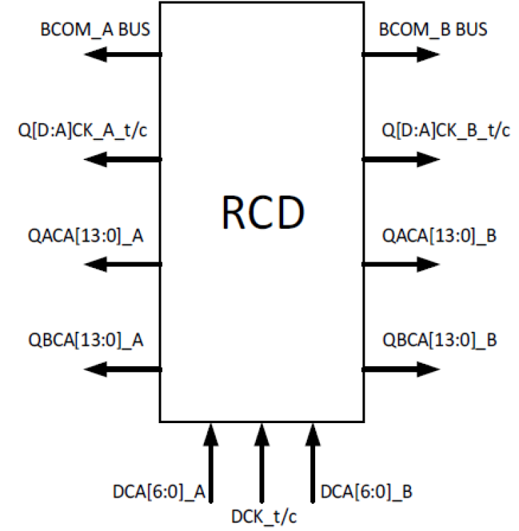 The Multiplexing Registering Clock Driver (MRCD) enhances the standard registering clock driver by processing an interleaved stream of DRAM commands at twice the typical RDIMM rate. It deinterleaves this command data stream and accurately directs it to the appropriate rank-specific outputs.