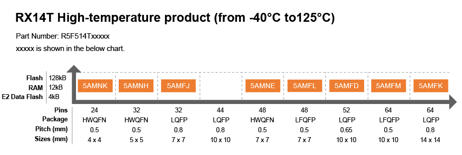 - 引脚和外设与 RX13T 和 RX23T 兼容