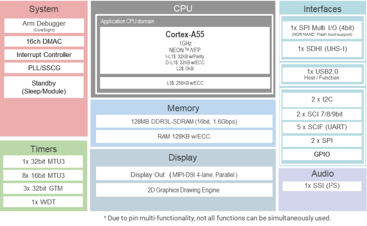 - 支持 NEON 扩展功能的 1GHz Arm Cortex®-A55 内核