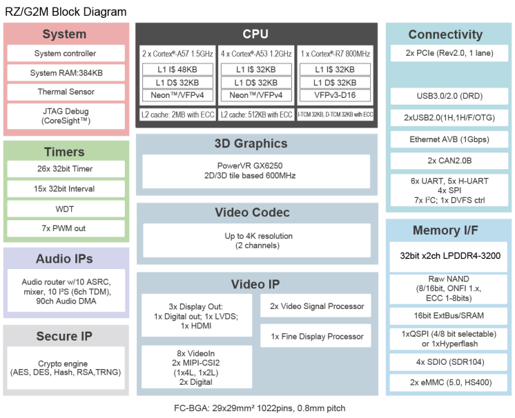 | Main CPU | Cortex-A57 x 2 + Cortex-A53 x 4 + Cortex-R7 x 1 |