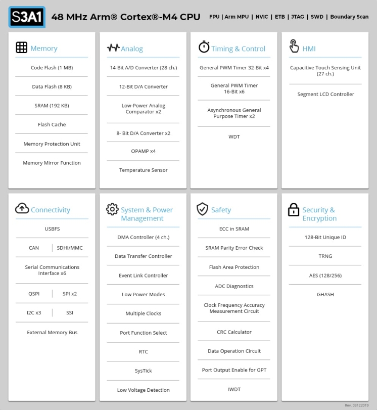 • The S3A1 MCU Group offers ample room for expansion