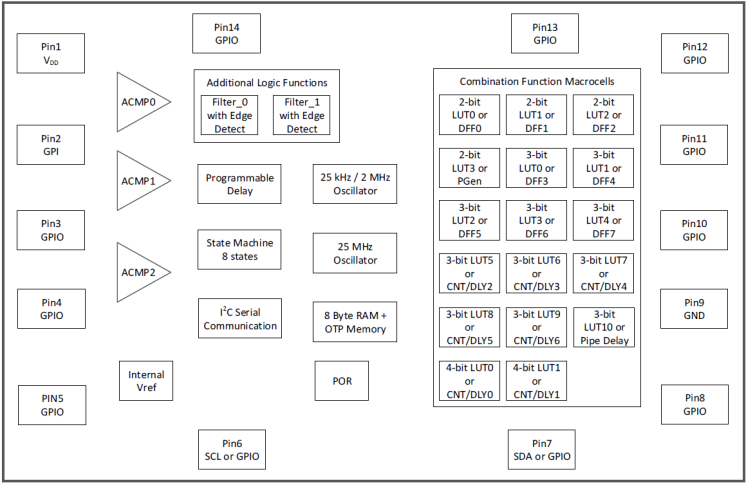- 5 个 8 位延迟/计数器或 3 位 LUT