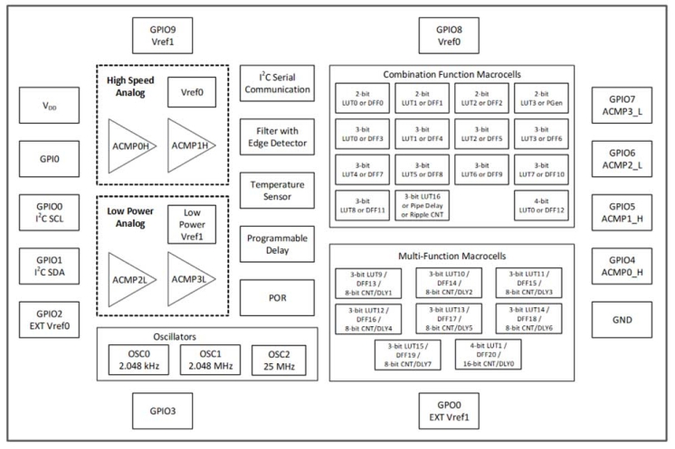 - 9 个可选 DFF/LATCH 或 3 位 LUT