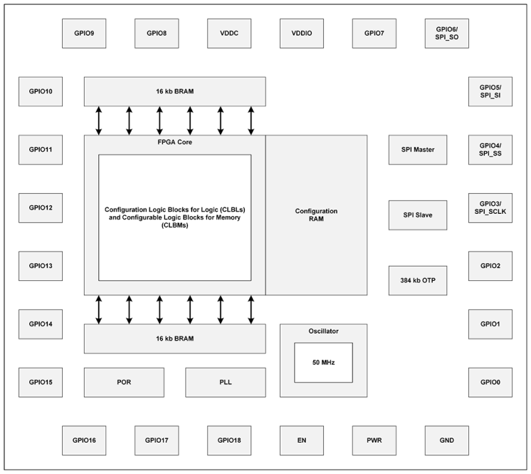 SLG47910V ForgeFPGA 为常见的 FPGA 应用提供了小型、低功耗组件。 使用该器件,通过对一次性可编程 (OTP) 非易失性存储器 (NVM) 进行编程来配置连接逻辑、IO 引脚和SLG47910V的宏单元,从而创建电路设计。 这种高度多功能的器件允许在非常小的低功耗集成电路中设计各种 FPGA 应用。