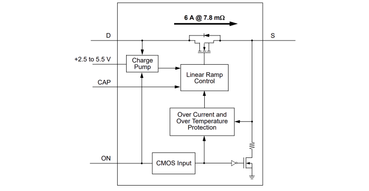The SLG59M1457V is a 7.8mΩ 6A single-channel load switch that can switch 0.85V to 5.5V power rails. The product is packaged in an ultra‑small 1.5mm x 2.0mm package.