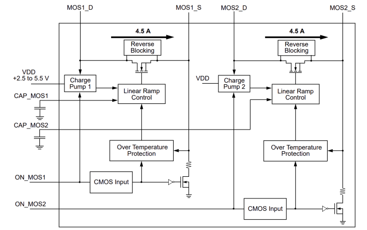 - 16mΩ RDSON while supporting 4.5A