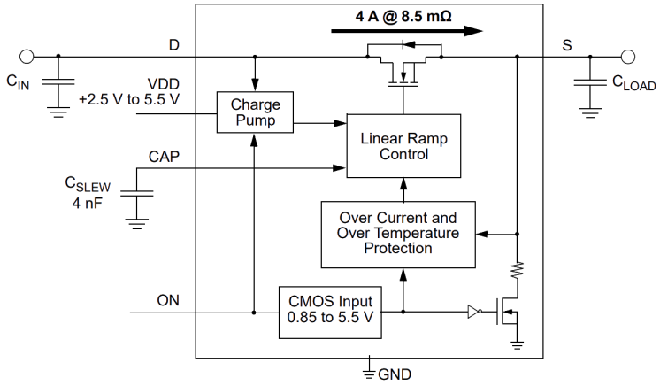 - 8.5mΩ RDSON while supporting 4.0A