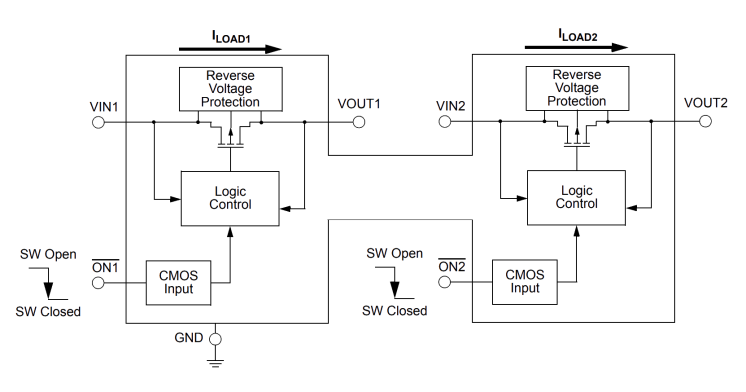 The SLG59M1641V is a dual-channel, 45mΩ PMOS load switch designed to switch 1.5V to 5.5 V power rails up to 2A in each channel. When either channel is enabled, reverse‑current protection will quickly open the switch in the event a reverse‑voltage condition is detected (a VOUT > VIN + 50mV condition opens the switch). If the channel’s VIN voltage is too low, the load switch also contains an internal UVLO threshold monitor to keep or to turn the switch OFF. Each load switch is independently controlled via its own low-voltage compatible CMOS input. Designed to operate over a -40 °C to 85 °C temperature range, the SLG59M1641V is available in a RoHS-compliant, ultra‑small 1.6mm x 1.0mm STDFN package.