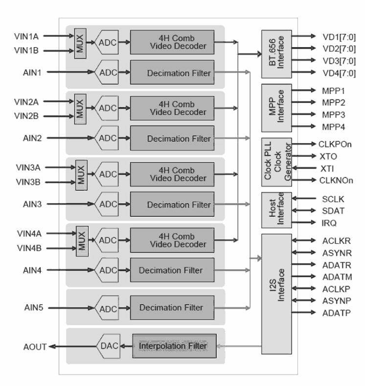 - Provides simultaneous four channel full D1 and CIF time-multiplexed outputs with 54MHz
