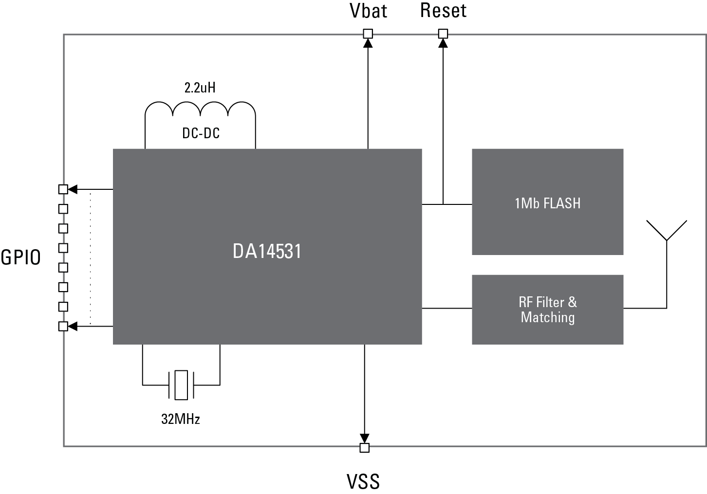 DA14531 SmartBond TINY™ 模块是低功耗蓝牙®(LE)解决方案,简单易用,将为未来 10 亿台物联网设备供电。