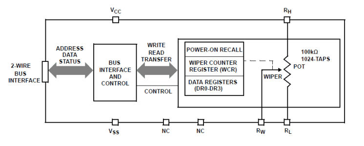 - 2-Wire serial interface for write, read, and transfer operations of the potentiometer