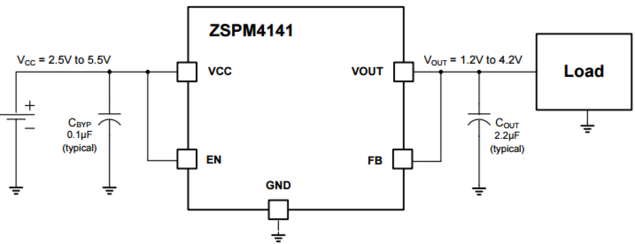 The ZSPM4141 is an ultra-low-power linear regulator optimized for minimal quiescent current losses via advanced, proprietary technology. It can improve energy efficiency and reduce heat due to power dissipation because it draws low nA-level quiescent current for light loads, yet it can regulate current loads as high as 200mA. The linear regulated output voltage is factory-configured to an option from 1.2V to 4.2V in 100mV steps. The ZSPM4141 also provides over-current protection.