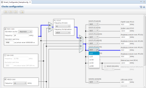 You can make clock settings by selecting a clock source and making connections in the block diagram in the [Clocks configuration] window.