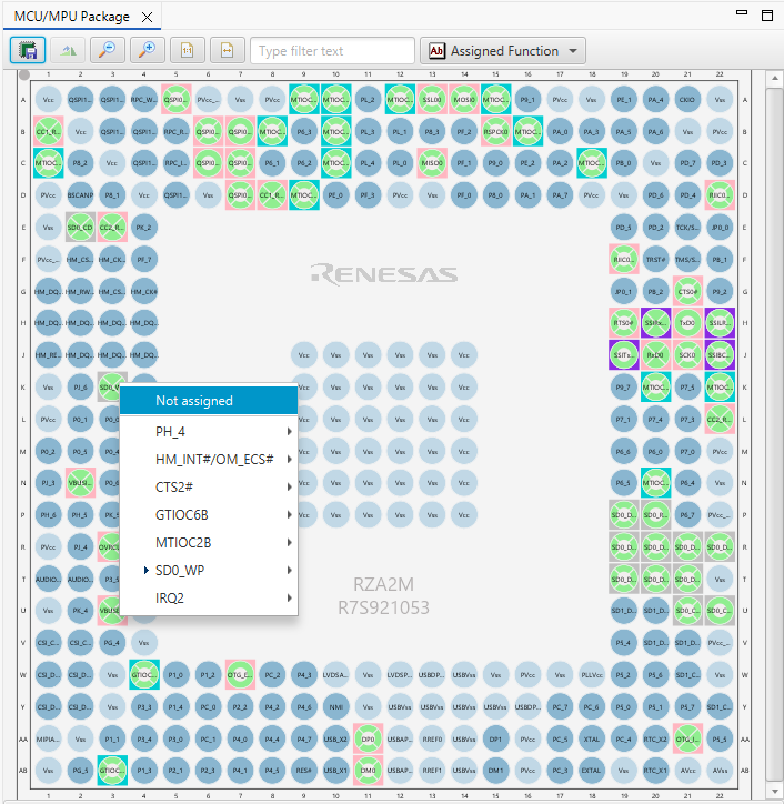 The assignments of pins can be set up through a GUI, which also checks and offers solutions for cases of contention for the same pin by multiplexed functions.